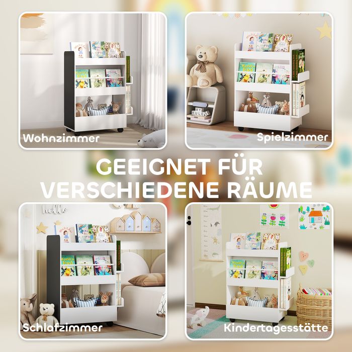 - Das Kinderregal beinhaltet 4 sanft gleitende Rollen mit 2 Bremsen, die eine mobile Leseecke schaffen