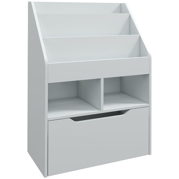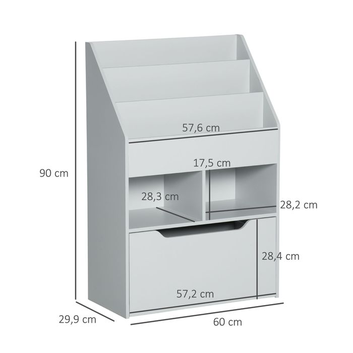 Kinderregal mit Schublade, Bücherregal mit Fächern, 60 x 29,9 x 90 cm, Grau