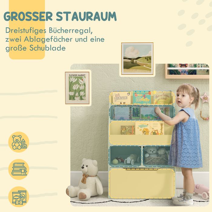 Kinderregal mit Schublade, Bücherregal mit Fächern, 60 x 29,9 x 90 cm, Grün
