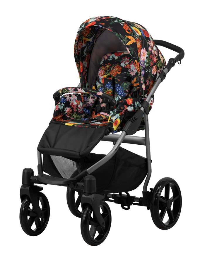 Kombikinderwagen Mata Blumen, Gestell grau, inkl. Autositz Cosmo