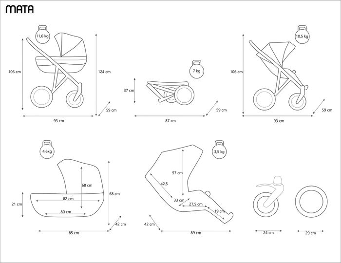 Der Mata Kinderwagen - entwickelt für die Kleinsten. Er sorgt für Sicherheit, Komfort und Bequemlichkeit bei der Benutzung ab den ersten Lebenstagen. Eine tiefe Tragetasche und ein bequemer Sportsitz sorgen dafür, dass Ihr Kind jeden Spaziergang geniessen kann.