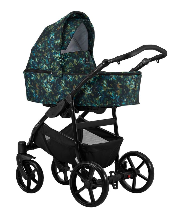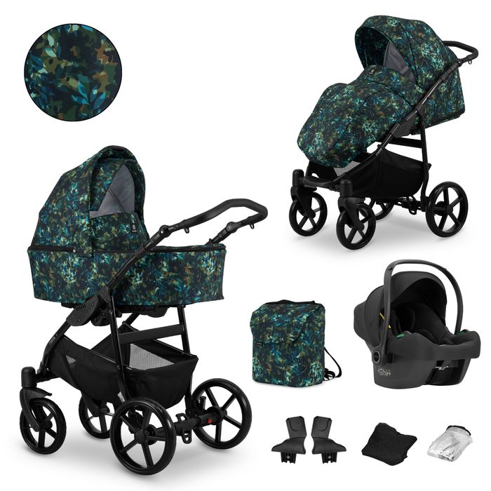Kombikinderwagen Mata Blätter, Gestell schwarz, inkl. Autositz Cosmo