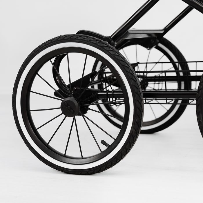 - Grosse Pumpenräder (35 cm) - fahren gut auf Sand, Schlamm, Schnee oder auf der Bordsteinkante. Dank dieser Räder kann Ihr Kind unter allen Bedingungen und auf allen Untergründen bequem im Freien spazieren gehen. Nicht schwenkbare Räder.