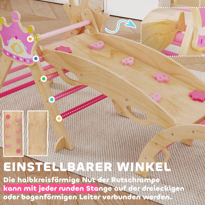 8in1 Klettergerüst Indoor, Prinzessinnen-Design, Rutsche, Rampe, Bogen, Holz