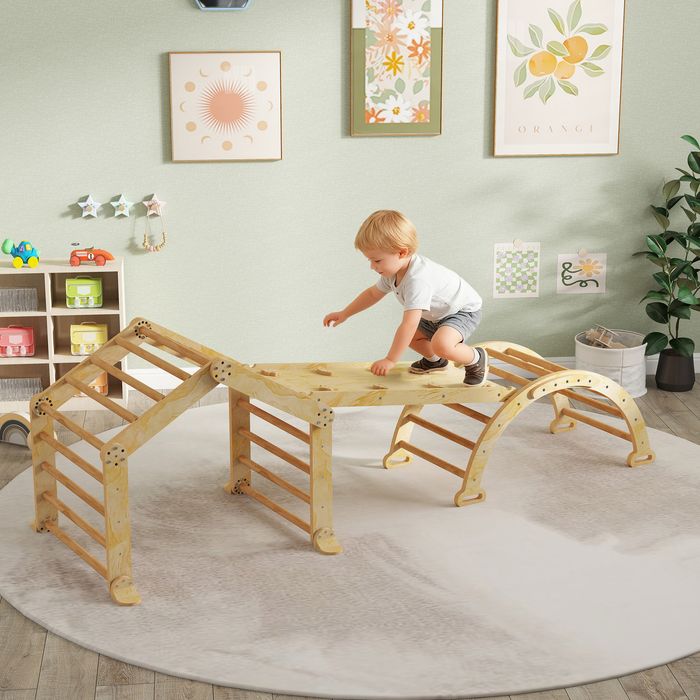 - Vielseitig klettern: Dieses 9-in-1-Klettergerüstset umfasst eine Kletterleiter, einen Bogen, der gleichzeitig als Schaukelstuhl dient, eine doppelseitige Rutsche und eine Tafel – es regt die Fantasie Ihres Kindes an und verwandelt jeden Raum in einen Abenteuerspielplatz