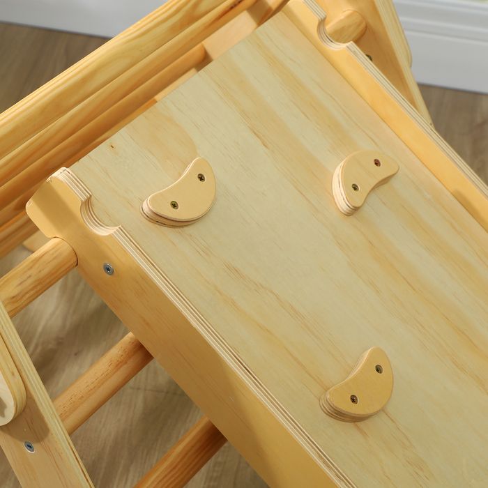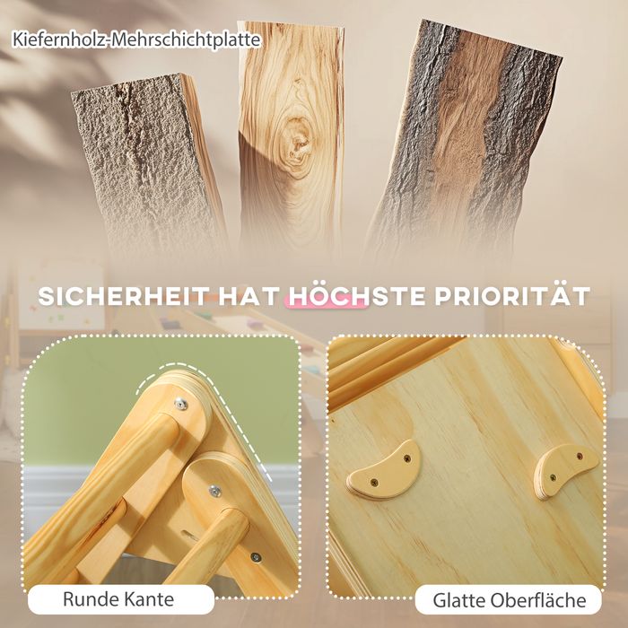 Fördern Sie die natürliche motorische Entwicklung ihres Kindes mit dem Klettergerüst Set! Dieses Kletterspielzeug umfasst eine Dreiecks-Leiter und ein Rutschbrett aus glattem Kiefern-Sperrholz. Das Gerüst lässt sich leicht zusammenklappen und der Neigungswinkel der Rutsche ist für unbegrenzten Spielspass anpassbar. Ideal für den Innenbereich geeignet, wird dieses Kletterdreieck zum neuen Highlight jeder Spielzeit.