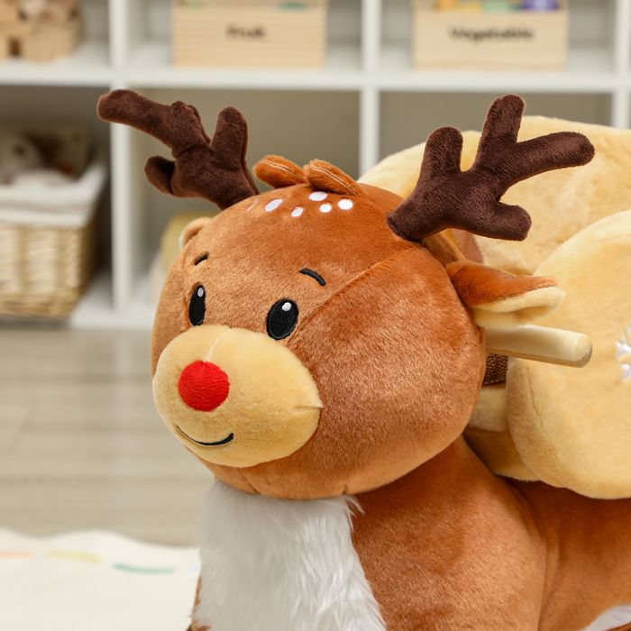 Schaukelpferd Rentier mit Schlafliedern, für 18-36 Monate Plüsch 65x35x59cm Braun