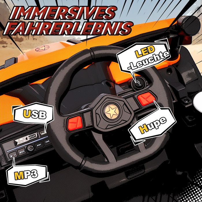 - ✔ Funktionierende Scheinwerfer, Hupe und Musik bieten ein spassiges, immersives UTV-Fahrerlebnis