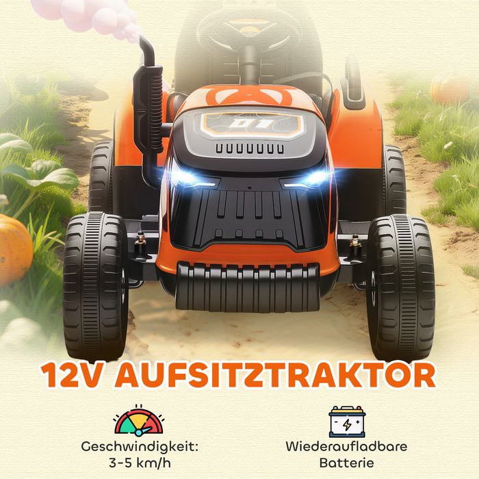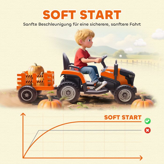 Elektrischer Kindertraktor, Aufsitz-Traktor mit Fernbedienung, Soft-Start, für Kinder im Alter von 3-8 Jahren, Orange