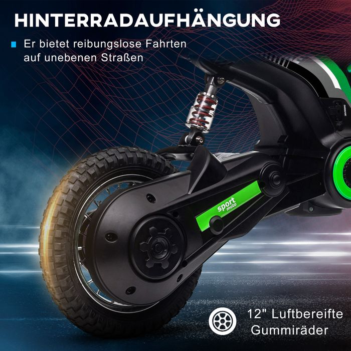 - Eingebautes Entertainment: Eine Musikfunktion, Hupen und ein realistischer Motorsound des Elektromotorrads sorgen für ein authentisches Fahrerlebnis, das Ihre Kinder begeistern wird