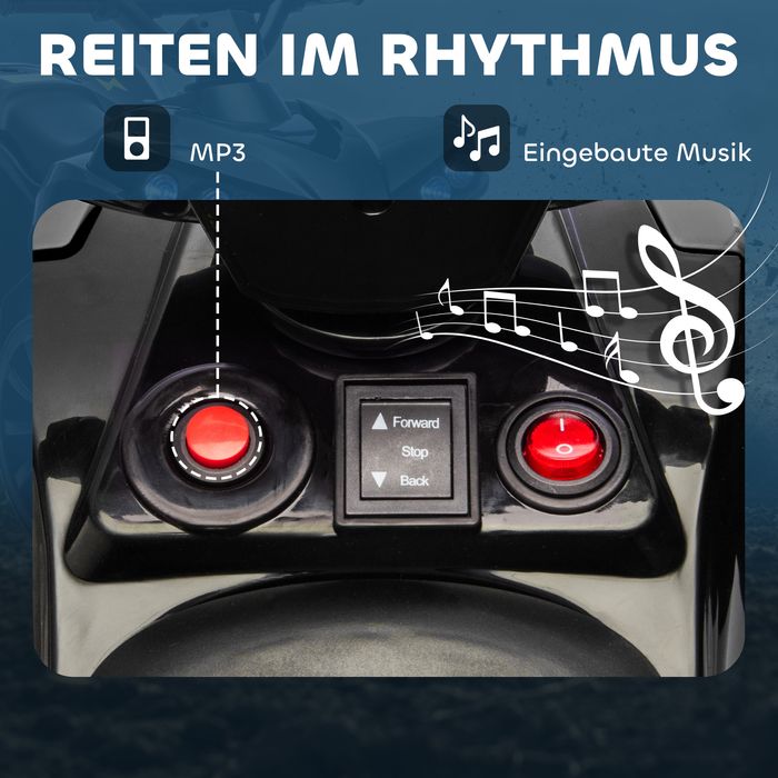 - ✔ Integrierte Musik und helle Scheinwerfer des Kinder Quads für ein eindrucksvolles Fahrerlebnis