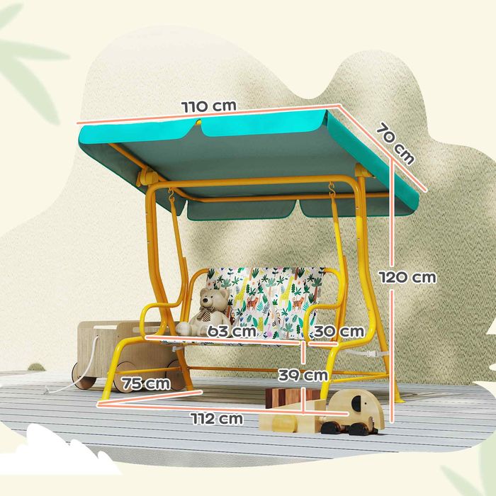 2-Sitzer Kinder Hollywoodschaukel, verstellbar, für 3-6 Jahre bis 60kg 112x75x120cm, Grün