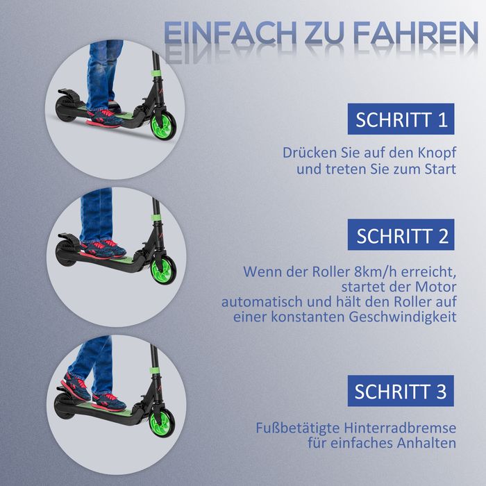 E-Scooter Elektro Scooter 120W Motor 6 km Reichweite max. 8 km/h Elektroroller ab 6 Jahren Grün+Weiss