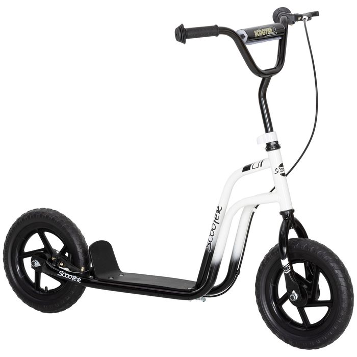 Kinderroller mit verstellbarem Lenker, grosse Räder, Parkständer, Handbremse, 5-12 Jahren, Weiss